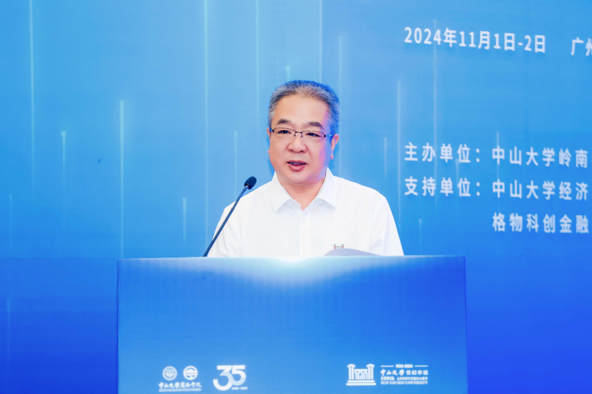 中山大学杨清华常务副校长向各界人士对本次论坛的大力支持表示衷心感谢,对出席论坛的各级领导、嘉宾及专家学者们表示热烈欢迎。杨清华在致辞中指出,中山大学作为一所国内一流、国际知名的现代综合性大学,具有综合性、研究型、开放式的办学特征,立足粤港澳大湾区的区位优势,形成了文理医工农艺综合发展的格局。在人文社会科学领域,中山大学始终致力于构建全方位、全领域、全要素的中国特色社会科学体系、学术体系、话语体系,进一步推进有组织科研,推动跨学科交叉融合发展,为加快构建中国自主的知识体系贡献更大力量。他表示,此次论坛形式极具创新,期待各位来宾能够在持续的学术交流与合作中进行思想碰撞,激发蓬勃灵感,进一步推动中国经济学知识体系建设。
