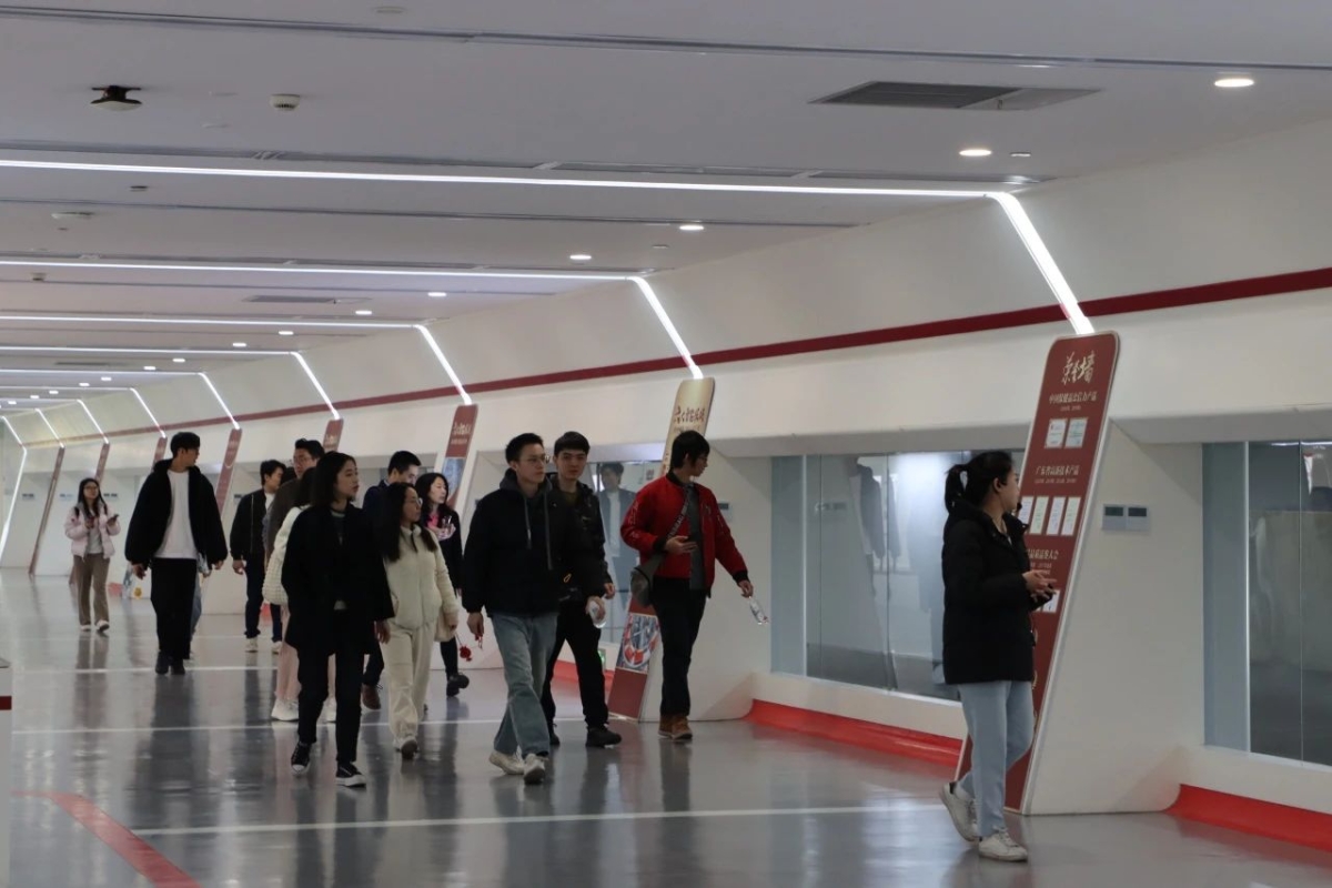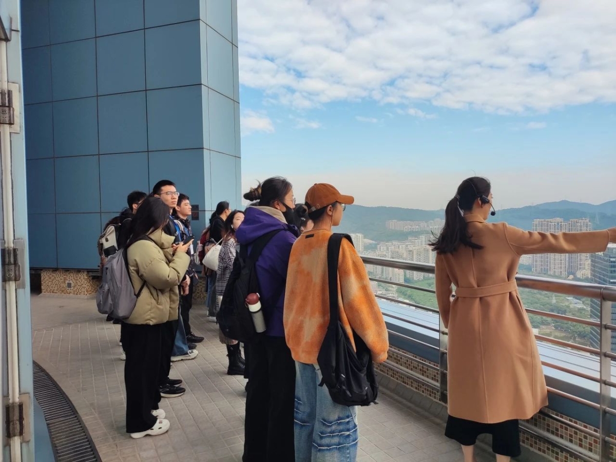 参访第一站,岭南学院师生分组参观了招商银行行史陈列馆和招行大厦天台。在行史陈列馆,大家认真聆听讲解员讲解招行的发展历程和企业文化,了解招行是如何从无到有、逐渐从深圳走向全国以至世界,引领银行业变革的。在大厦天台,大家极目眺望,感受深圳这座年轻城市蓬勃的经济活力,也体会到招行和深圳一同走在改革开放最前沿的时代风采。