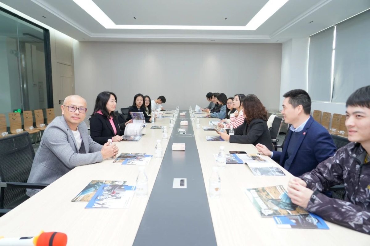 在随后的座谈会上,公司总经理丁宗林向参访师生介绍了公司品牌“香帅重机”的历史传承、生产工艺以及产品系列。公司总监、2019级CHEMBA校友邹征涛向参访师生分享了自己从事国际贸易事务过程中的实践经验,以及产品出海过程中遇到的问题与解决方案。两位高管通过介绍自身成长经历和从业经验,鼓励学生应保持积极的心态,心怀梦想,不断调整自己的职业规划,适应市场的变化和个人的成长。最后,岭南学院陈刚教授代表学院向两位高管赠送了纪念品,以表达敬意和感谢。在同学们的依依不舍中,本次参访活动圆满落下帷幕。