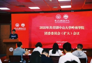 2025年10月12日,共青团中山大学岭南学院团委委员会(扩大)会议,中山大学岭南学院第三十一次学生代表大会、第三十二次研究生代表大会在岭南堂三楼讲学厅顺利召开。岭南学院党委副书记樊峰会,团委书记岳美琴,团委副书记刘相淳、应泽园出席大会。
