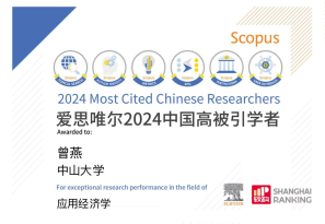 2025年3月25日,爱思唯尔(Elsevier)发布了2024“中国高被引学者”(Highly Cited Chinese Researchers)榜单。我院曾燕教授2020-2024年、连续五年入选应用经济学学科领域高被引学者。