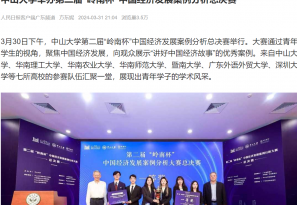 2024年3月30日,第二届“岭南杯”中国经济发展案例分析大赛总决赛在中山大学南校园怀士堂隆重举行。本届“岭南杯”受到人民日报、新华网、光明日报、广州日报等在内的多家国内主流媒体的关注报道。 媒体报道 人民日报
