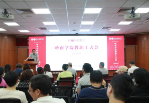 7月7日下午,岭南学院在岭南堂三楼陈荣捷讲学厅召开期末全院教职工大会。学院院长李善民,党委书记黄毅,党委副书记樊峰会,副院长鲁晓东、刘彦初、林建浩,院长助理柳建华、郭凯明及学院全体教职员工共120多人参加了本次会议。会议由学院党委书记黄毅主持。