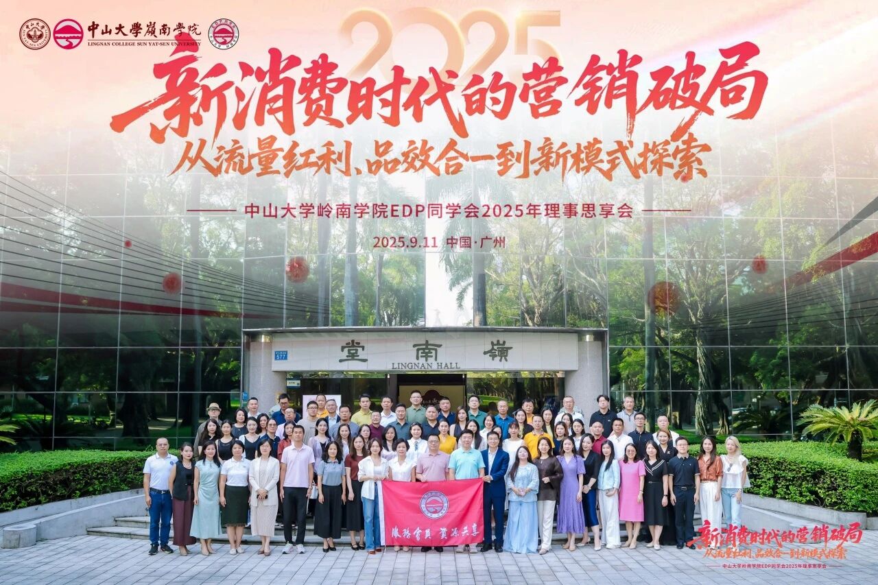9月11日下午,新消费时代的营销破局:从流量红利、品效合一到新模式探索——中山大学岭南学院EDP同学会2025年理事思享会在中大南校园岭南堂成功举办。
