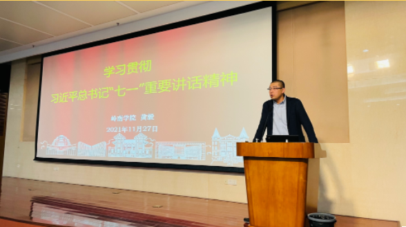 黄毅书记为参与本次培训的学生骨干进行了党史专题教育。黄书记带领同学们回顾了我党成立以来重要的历史节点,重温了中国共产党的百年奋斗历程,重点学习了习近平总书记在中国共产党成立一百周年大会上的重要讲话精神,号召同学们向第二个光辉一百年奋斗目标迈进。