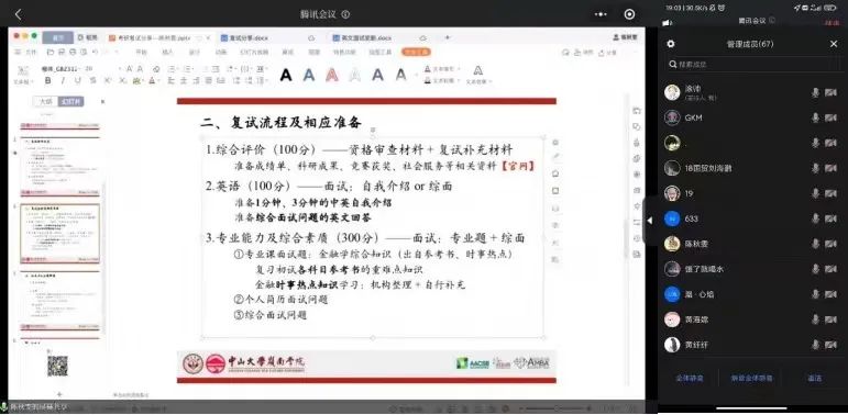 陈秋雯师姐承续郭凯明副教授的经验指导,以考研上岸人、过来人的视角,对复试相关信息、流程及相应准备、注意事项进行详细的讲解,环环相扣,分享细密,同学们也积极反馈,从师姐的耐心答复中进一步消解困惑。