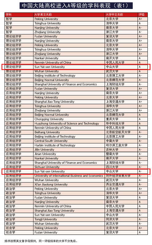 喜讯|中山大学理论经济学和应用经济学在2022年度泰晤士高等教育中国学科评级中荣膺双A