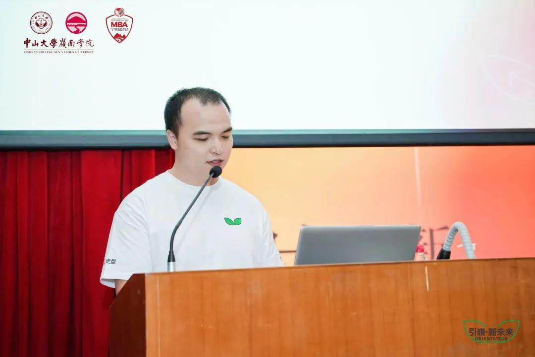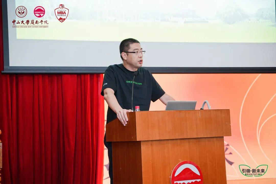 紧接院长致辞后,中山大学岭南学院 MBA校友会执行会长关守印校友对全体金融专硕新生表达了最真切的欢迎和问候,并真诚分享了自己在岭南求学的心路历程。他谈道,七年前他也是坐在叶葆定礼堂的一员,满怀喜悦幸福投入中大岭南的怀抱。在红灰精神洗礼下,在作育英才、服务社会的教导感召下,在中大岭南师长与校友们的关怀下,他与同窗好友们一起经历成长,完成蜕变。七年之后,岭南涅槃MF新生,当初的那份喜悦与激情,薪火相传,永不熄灭!