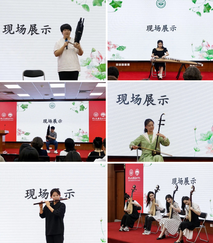 接着,艺术学院专业同学进行民族乐器的现场展示,由古筝、笛子演奏的《姑苏行》,二胡演奏的《秦腔主题随想曲》,笙演奏的《挂红灯》《欢乐的草原》和琵琶演奏的《龙船》依次亮相,整场讲座的气氛被推向了高潮,与会师生在风和日丽的午后享受了一场古色古香的音乐之旅。在清新雅致的古典民乐之中,讲座圆满结束。