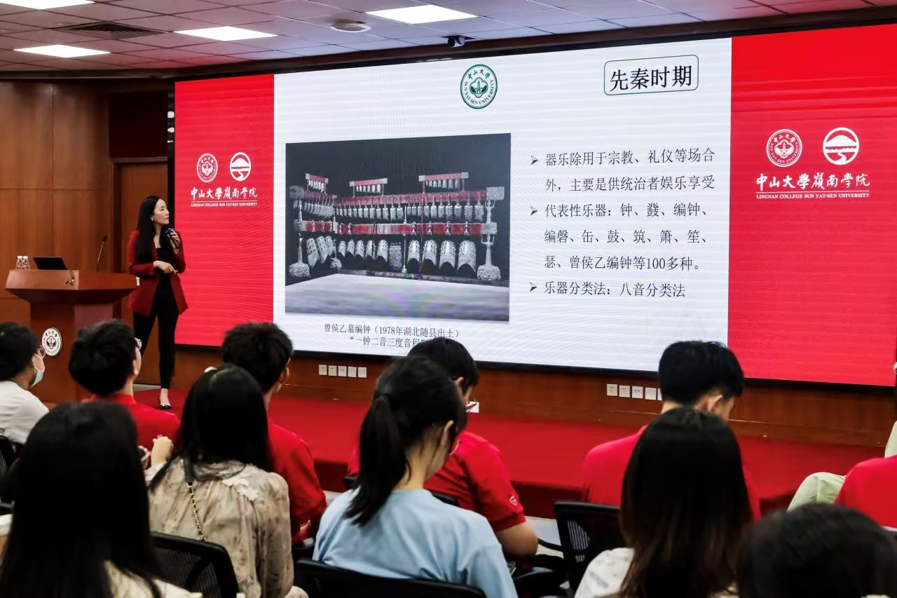 2023年4月14日下午,中山大学艺术学院马琳副教授主讲岭南大讲堂博雅系列,在岭南堂三楼讲学厅为与会师生带来了主题为“繁音忽已阕,雅韵诎然清”的国乐讲座。学院党委副书记樊峰会出席了讲座,讲座由学院团委副书记刘相淳老师主持。