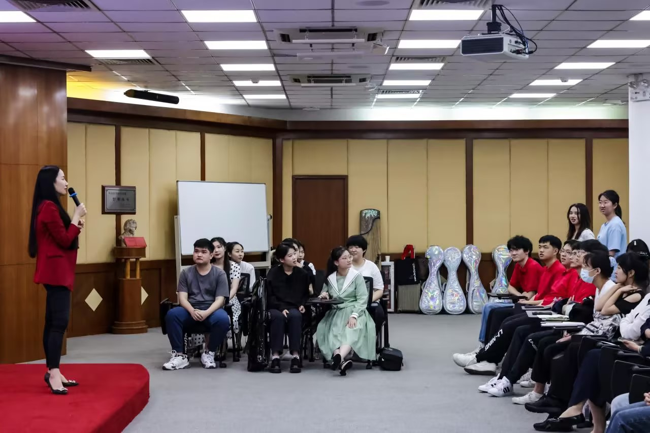 讲座伊始,樊峰会副书记为讲座致辞。她提到,中国传统民乐流传至今已经数千年,依然让人陶醉。作为中国优秀传统文化的重要部分和古典美学的重要载体,传统民乐优雅的音韵在美育中具有不可替代的作用。本次讲座以共赏雅乐为主题,便是表达了一种对古典雅趣和传统文化传承的追求。