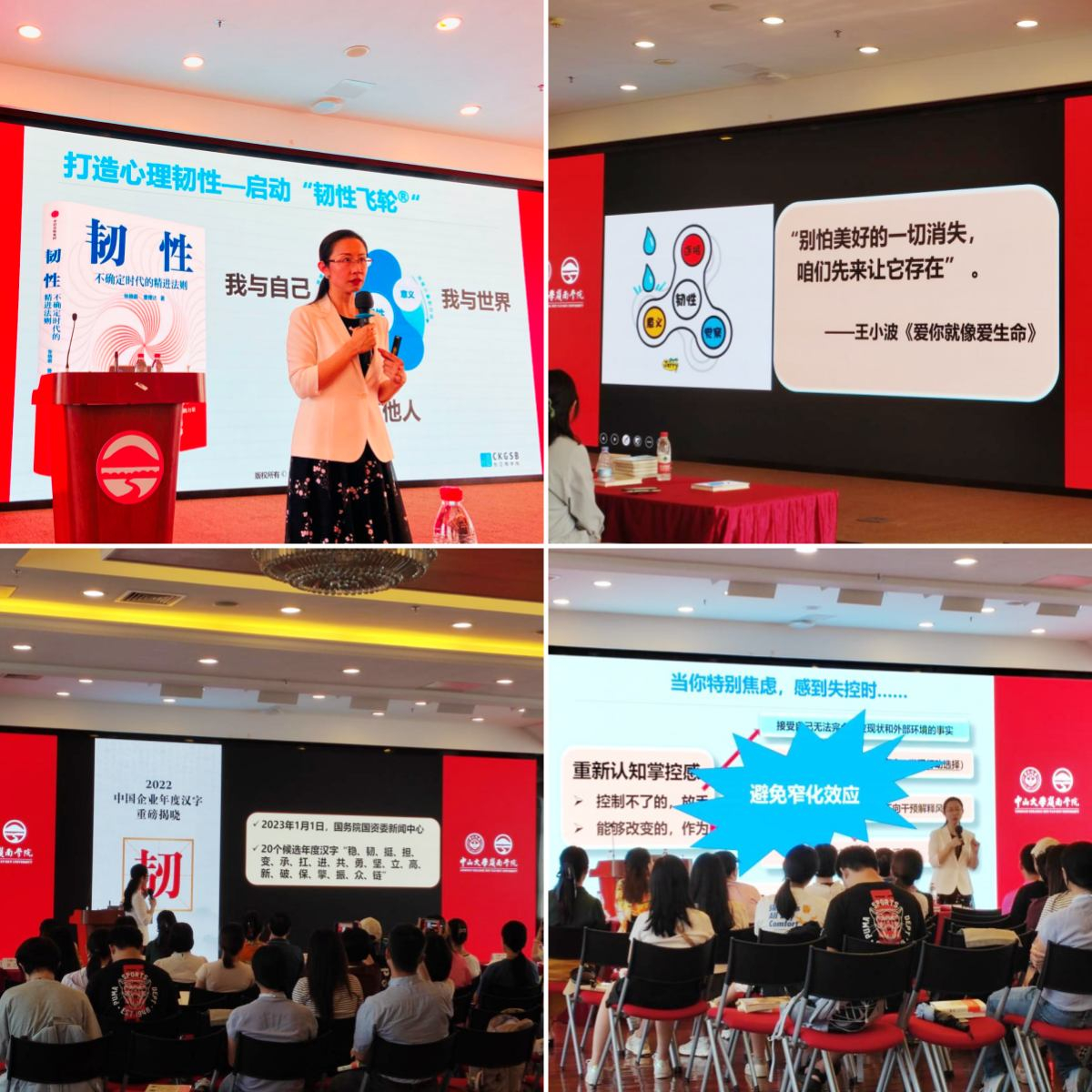 2023年6月3日,岭南学院1996级经济学专业校友张晓萌教授关于《后疫情时代下心理韧性的打造》的讲座在MBA大楼举行。本次活动由中山大学岭南人社团承办,面向全校师生。长江商学院领导力、行为心理与包容发展研究中心高级研究员曹理达、付静仪,中山大学岭南学院党委副书记樊峰会,岭南学院方建国教授,岭南学院校友项目主任程锐敏出席了本次论坛。