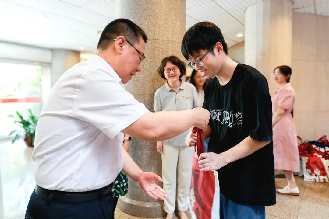 5日上午,中山大学党委书记朱孔军、党委副书记张琪一行走访岭南学院迎新点,深入了解迎新工作开展情况,仔细察看报到现场的分区设置、流程指引及应急保障措施,岭南学院院长林建浩,党委书记钟一彪、党委副书记樊峰会,党政办公室主任严寒,团委书记岳美琴等陪同。朱孔军书记一行与现场同学、志愿者们进行亲切交流,询问同学们对新环境的适应情况,并为正在办理手续的同学送上专属开学“大礼包”。