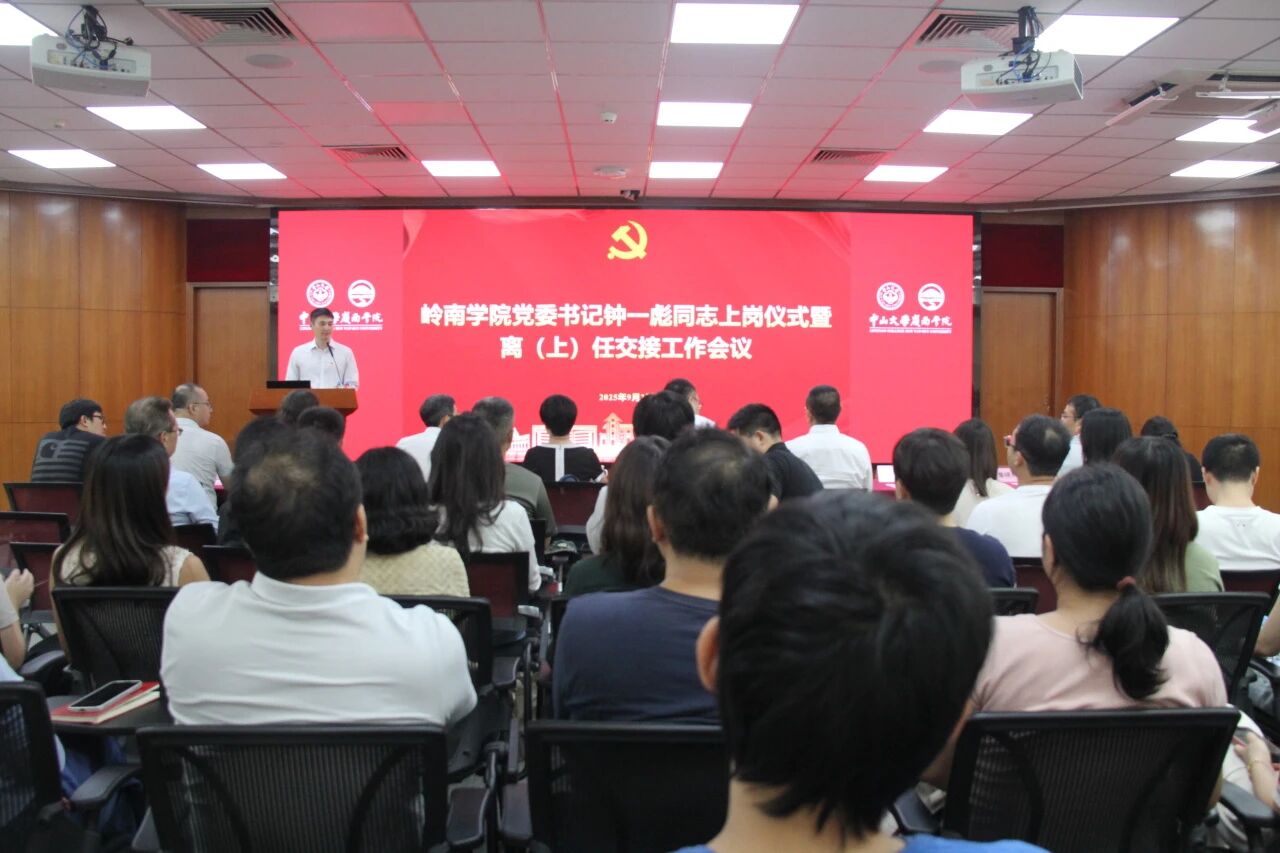 杨晓萌同志宣读了《中共中山大学委员会关于钟一彪等同志任免职的通知》(中大党组发〔2025〕35号文),经研究决定:钟一彪同志任岭南学院党委委员、书记,免去其管理学院党委书记、委员职务;免去黄毅同志岭南学院党委委员、书记职务。