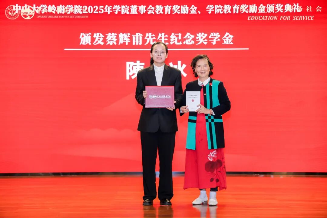 黄瑞敏主任在致辞中代表学校校友会向出席颁奖典礼的各位校友嘉宾表示感谢,并向获奖师生表示祝贺。她表示,岭南学院作为学校人文社科重要力量,聚焦创新型经济学人才培养,其蓬勃发展离不开校友与社会各界的鼎力支持,教育奖励金的设立彰显了各界对教育事业的赤诚。她寄语获奖师生珍惜荣誉、常怀感恩、砥砺前行,成长为担当民族复兴大任的时代新人,并表示校友会与教育发展基金会将持续搭建爱心桥梁,凝聚全球校友与社会各界力量,助力岭南学院高质量发展与学校世界一流大学建设。