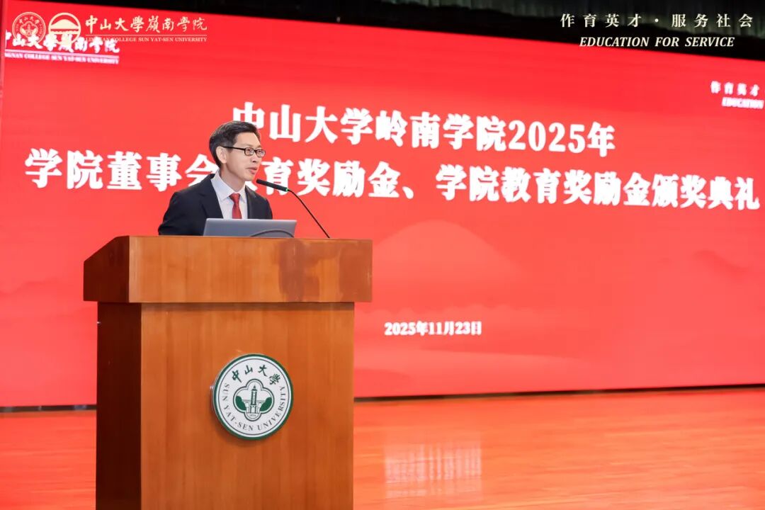 胡宁学长在致辞中代表全体董事向获奖师生送上热烈祝贺,深情致敬伍沾德等老学长的奉献,感谢各界对学院的支持。回顾36年办学历程,胡宁学长细数学院近年亮眼成果:AI平台落地、国际项目推进、百余名学子扎根乡村振兴一线,彰显“作育英才,服务社会”的初心。他以“立德立学、笃行致远、服务社会”三点期许与师生共勉,鼓励大家以荣誉为帆,在AI浪潮与乡村沃土间勇毅前行,让岭南红灰精神在时代征程中熠熠生辉。