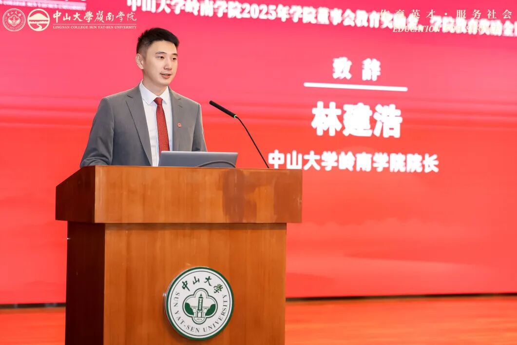 林建浩院长向出席嘉宾、校友致以热烈欢迎,向长期支持学院发展的社会各界友人表达衷心感谢,并向荣获本年度各类奖励金、奖助学金的教职工与同学们送上诚挚祝贺。他在致辞中介绍近年学院在人才培养领域成果丰硕,而这些成绩的取得离不开校友与社会力量的鼎力支持。他对同学们提出期望:珍惜社会关怀与学院资源,以 “敢为人先” 的勇气突破自我,以校友学长为榜样勇担责任,扎根中国大地、放眼全球发展。林建浩院长代表学院表示将把社会支持转化为发展动力,培育创新人才,期待与各界深化合作。