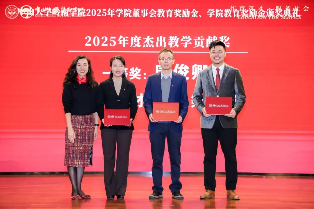 获奖教师代表康俊卿副教授在发言中提到,他既是岭南校友,也是学院教师,感恩学院的培养与各方的支持。他表示,岭南教育扎实前沿且富家国情怀,院训“作育英才,服务社会”是行动指引。他认为教师应做“展示者”,为学生拓展认知边界。面对 AI 时代挑战,他强调人文社科的“压舱石”作用,愿坚守教师本分,传递知识与责任。