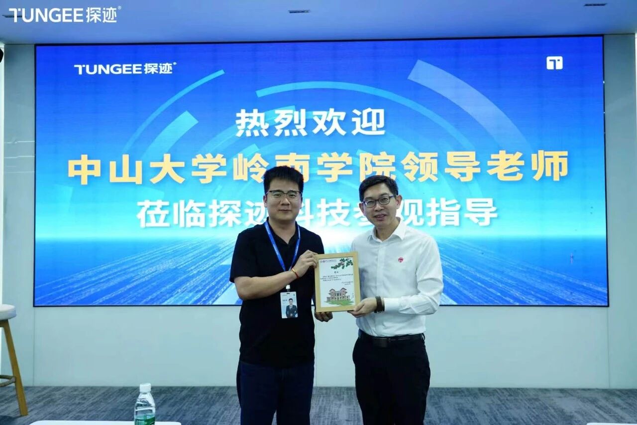 中山大学岭南学院党委书记钟一彪代表学院对探迹科技的热情接待表示感谢,并介绍了学院的历史沿革、办学特色、学科优势与人才培养成果。他指出,大数据、云计算、人工智能等新一代信息技术正从底层重构产业价值链、重塑企业核心竞争逻辑,数字化转型已成为高校人才培养和企业高质量发展的必答题。希望以此次走访为契机,将产业前沿技术与鲜活实践案例引入课堂教学,建立常态化、长效化合作机制,在人才联合培养、科研项目攻关、实习基地建设等方面开展全方位深度合作,为产业发展输送更多既懂经济管理又掌握数字技术的复合型人才。
