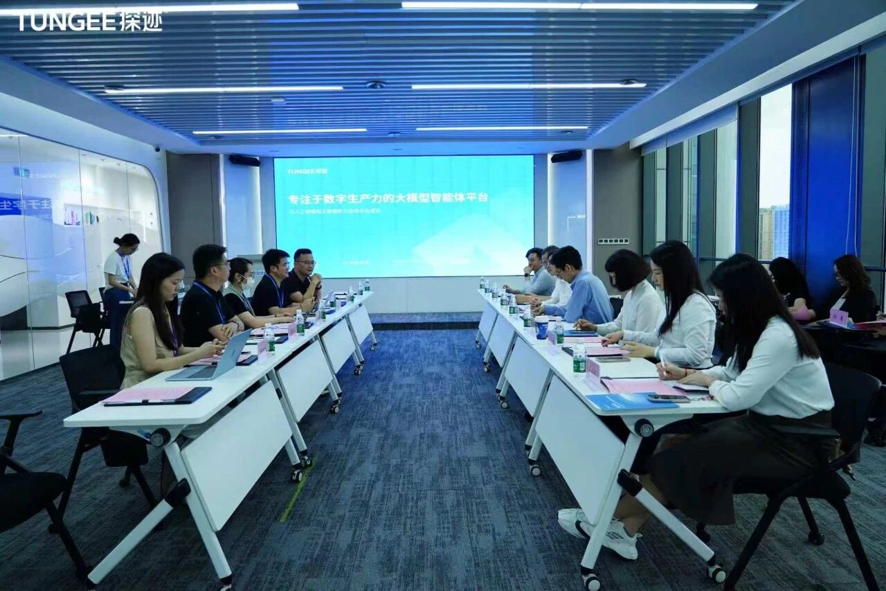 参访团一行首先实地参观探迹科技企业展示区,系统了解企业从初创企业成长为国内AI智能营销领域独角兽的发展历程,重点考察其在人工智能大模型、大数据分析、智能销售系统等核心技术领域的自主创新成果,以及为制造业、医药、金融等超五万家企业提供数字化营销解决方案的实践成效。探迹科技凭借自主研发的大模型智能体平台,在销售全流程增效、产业链上下游资源整合、企业数字化升级等方面展现的技术实力与行业赋能能力,获得参访团高度认可。