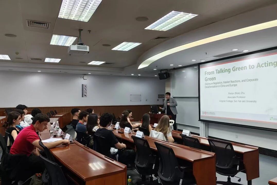 朱效禹副教授系统阐述了绿色披露正从企业自愿的ESG叙事向硬约束规则转变,分析了披露规则如何提升信息可比性与可信度,企业又如何在市场与监管双重压力下调整投资、创新与减排决策。他还对比了中国与欧洲的绿色披露监管框架,引导学生理解如何将“披露监管是否有效”转化为可检验的科学问题。