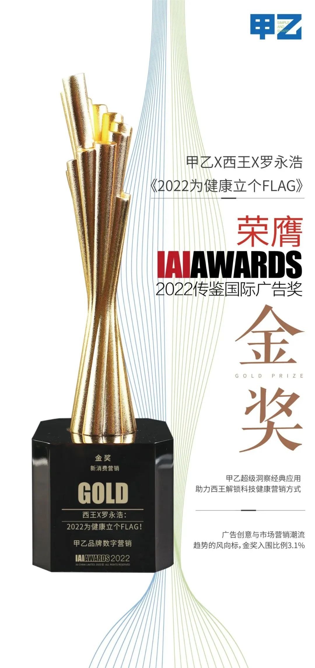 7月14日,2022第十届TopDigital创新营销奖获奖结果正式揭晓,甲乙不负众望,在2904件作品中突出重围,用实力斩获TopDigital创新营销银、铜两项大奖——西王x罗永浩:2022为健康立个FLAG!、广发《名画闹新春》,充分体现甲乙的实力。