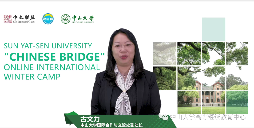 由教育部中外语言交流合作中心主办、中山大学高等继续教育中心承办的中山大学2021年“汉语桥”线上国际冬令营开营典礼于2021年12月6日顺利开营。此次线上国际冬令营受到了国内外各界人士的广泛关注和积极参与,中华人民共和国驻摩洛哥王国大使馆、拉巴特中国文化中心、非洲中国合作与发展协会、菲律宾亚典耀大学孔子学院、墨西哥尤卡坦自治大学孔子学院、南非开普敦大学孔子学院等团组,来自全球近40个国家及地区4200多位国际学生参加线上课程学习。