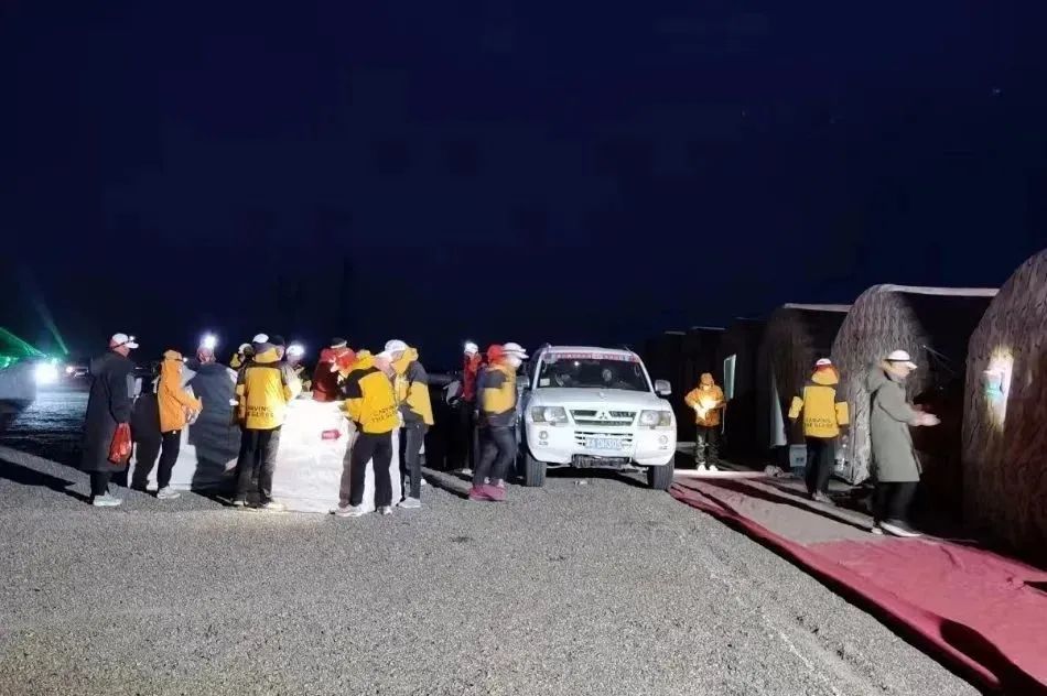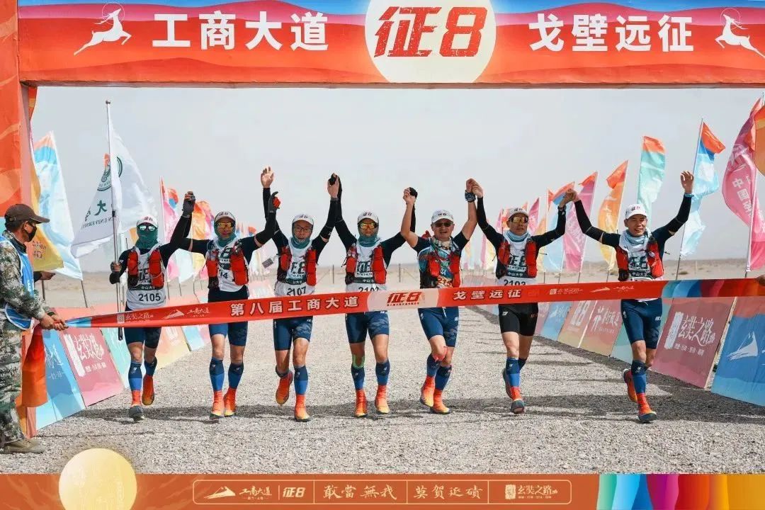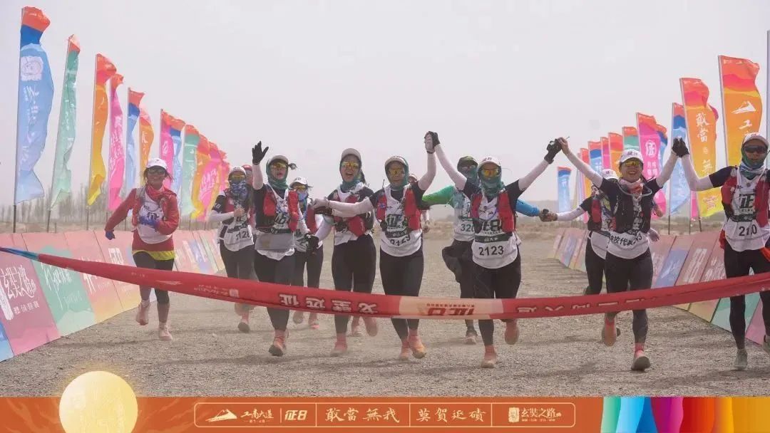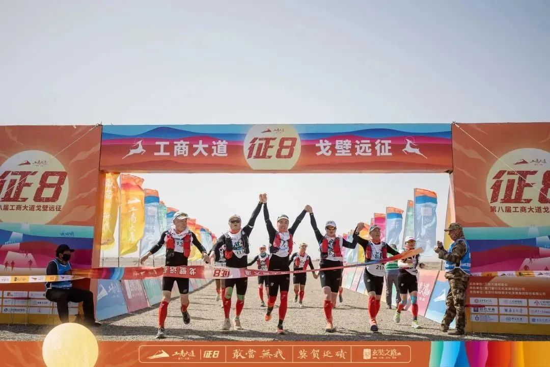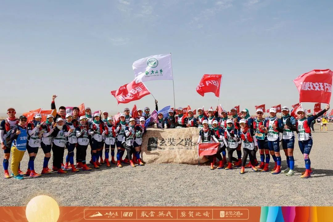 三队既熟悉戈壁路线的特点,为竞赛日做好身体和思想上的准备,又抓住难得的体验机会,领略戈壁独有的风景和魅力,感悟玄奘西行的不易与可贵。三队如期平稳完成首日29公里行程,均全员携手冲线。