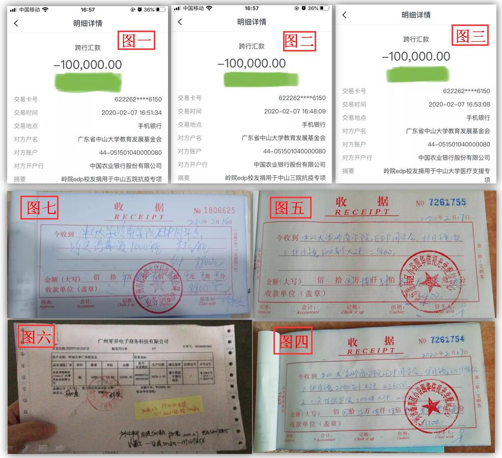图一至图三:捐助现金30万至中山大学教育发展基金会