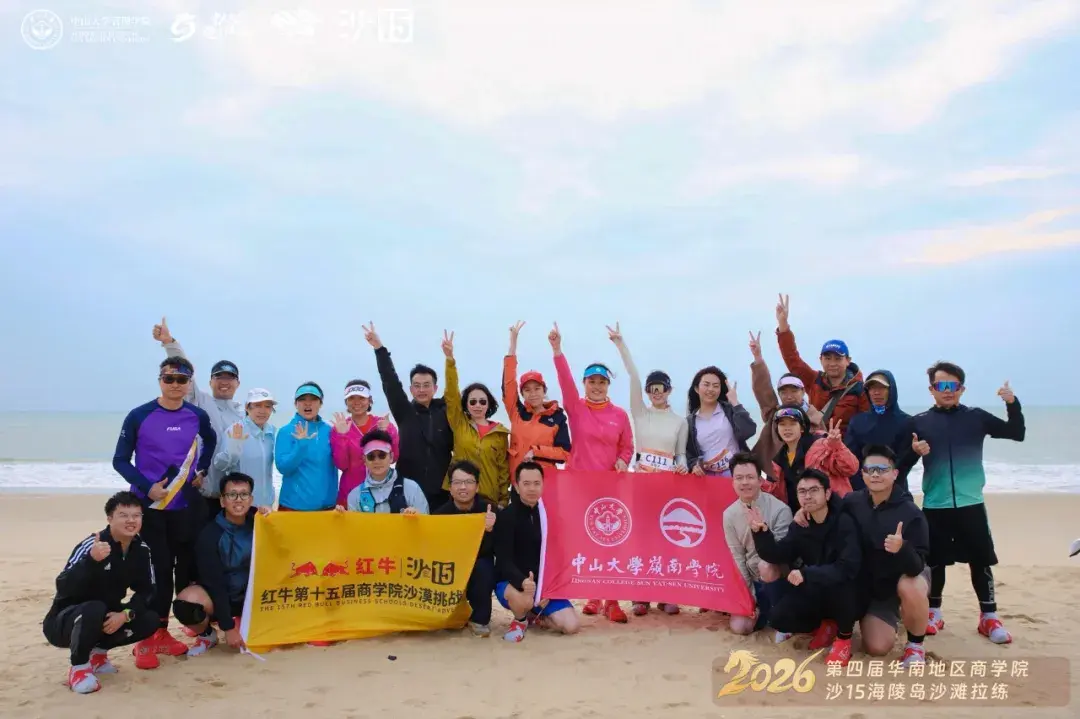 春节前夕,年味渐浓,中山大学岭南学院沙十五战队备战第十五届商学院沙漠挑战赛的征程已紧锣密鼓地展开。来在阳江海陵岛的碧海银沙之上,我院队员们全情投入为期两天的沙滩拉练。这不仅是一次体能的淬炼,也是一次沙15赛事的模拟。