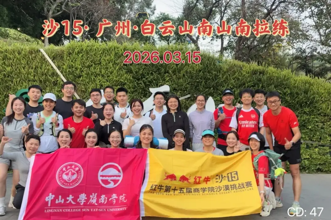 课后喧嚣未散,中山大学岭南学院三十多位同学已整装待发相约奔赴白云山,开展盘山拉练备战沙15。本次拉练由沙15领队余雅丽老师全程带队陪伴,强B队教练现场专业指导。队伍汇聚25级数字经济MDE新生、往届学长校友,一场充满朝气的山野奔跑就此启程。