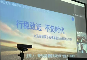 11月1日至11月5日,中山大学岭南学院举办了2021级金融&保险专硕参访周系列讲座活动。金融系戴芸老师、彭浩然老师、冷铁成老师、王起健老师、程明勉老师、朱效禹老师及潘璐瑶老师担任讲座的主持人。来自金融行业不同领域的业界导师和嘉宾通过线上或现场讲座的方式为同学们介绍企业及行业发展情况,传授和分享他们宝贵的职场及生活的经验与心得,解答同学们对目前学习、未来求职方向和职业规划的疑惑。 01 卿云基金专场