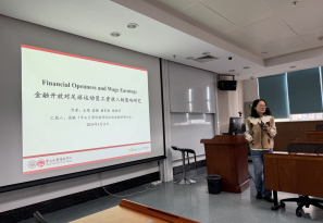 2024年3月13日中午,春季学期第二场岭南学术午餐会在MBA801室举行。国际经济与区域经济教研室21级金融学博士生温韫作为论文汇报人,为大家带来了主题为:“Financial Openness and Wage Earnings”的论文分享。午餐会由经济系主任、国际经济与区域经济教研室主任李兵副教授主持。